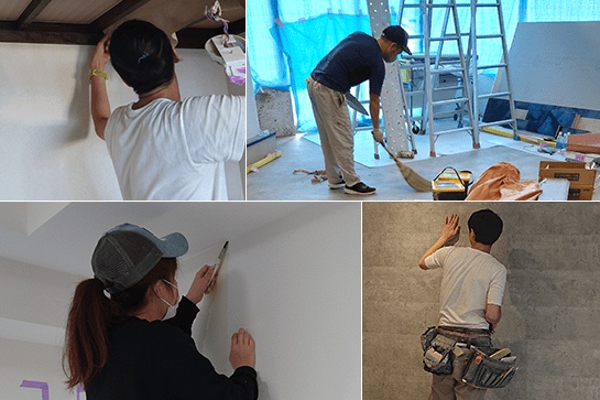 当社の職人はコンクリートやベニヤ板、砂壁など、さまざまな特性を熟知し、素材に合わせて適切な下地処理を行なっております。